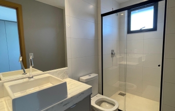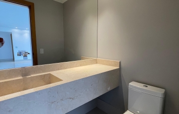 3 suítes todas com armários planejados finamente executados , sala ampla com vista única, sol da manhã, lavabo, cozinha muito bem planejada com armários, área de serviços com banheiro, laje técnica com boiler já instalado , 20 vagas de garagem, escaninho, área de lazer .,