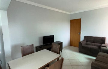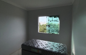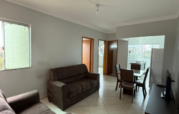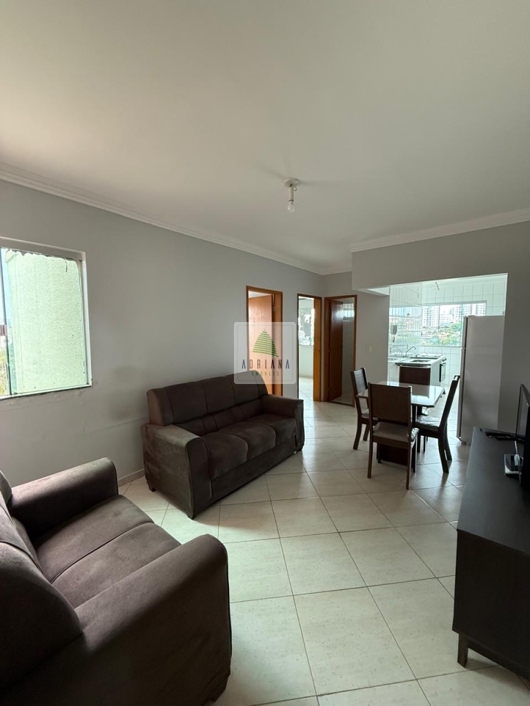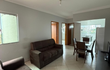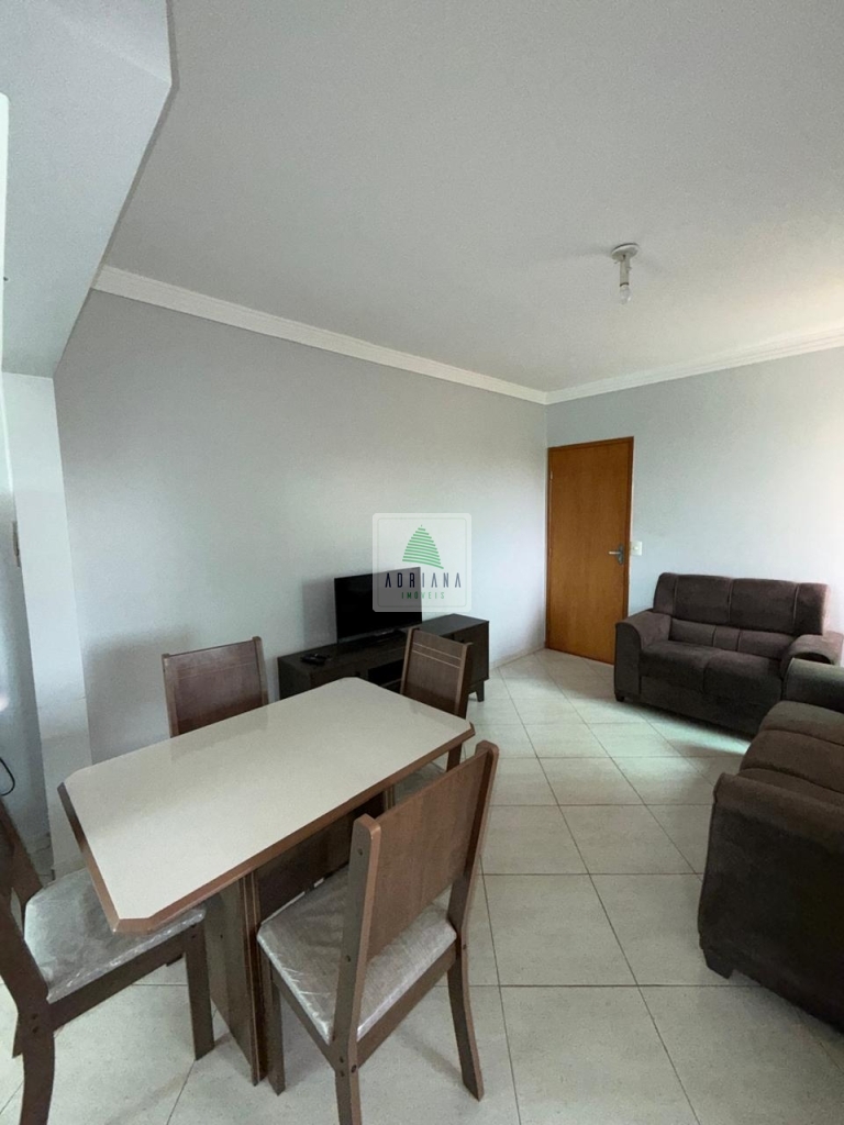 2 quartos com 1 com cama de solteiro e 1 cama casal , sala com mesa de jantar 4 cadeiras, jogo de safo de 2 e 3 lugares, cozinha com armário, fogão com forno 4 bocas, bebedor elétrico, geladeira,, área de serviços, 1 vaga de garagem