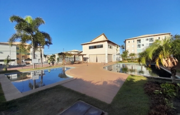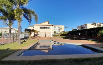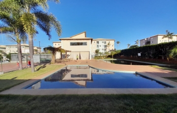 Área de lazer com academia piscina, parque para crianças, quadra.