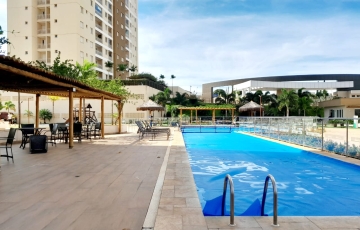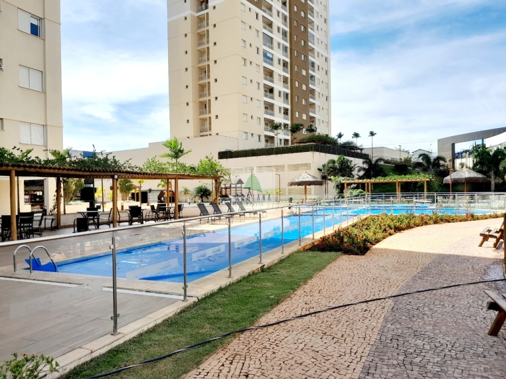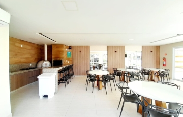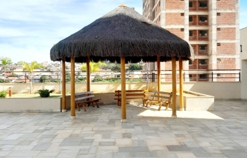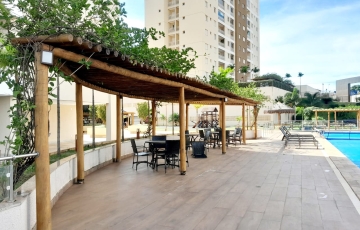 2 quartos, sendo 1 suíte com armários planejados e ar condicionado , sala ampla , varanda , cozinha com armários planejados , cooktop, área de serviços, , garagem para 2 carros área de lazer.