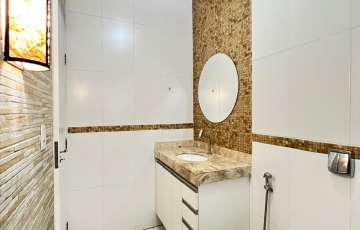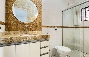 casa acolhedora . ampla , sala de estar copa , cozinha, 3 quartos sendo 1 suíte com hidromassagem, 1 suíte , , banheiro social, espaço gourmet com varanda , jardim de inverno , ilha bancada em granito , churrasqueira, armários, salão , área de serviços piso superior com: lavandeira , dispensa , banheiro, garagem ampla 3 carros .