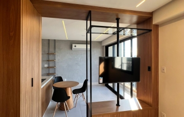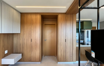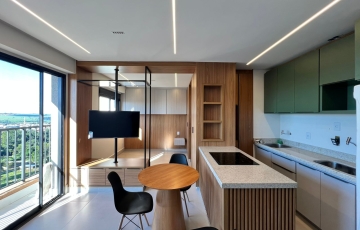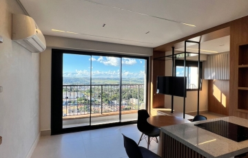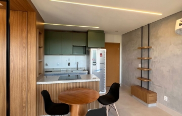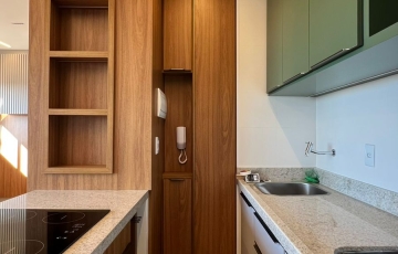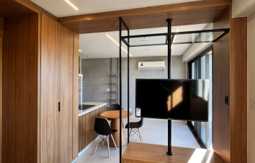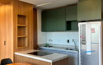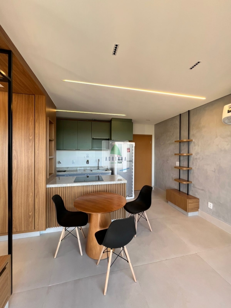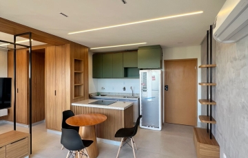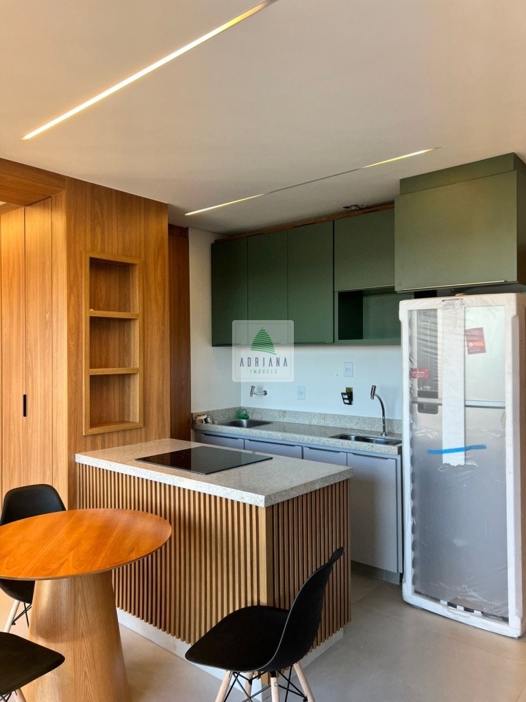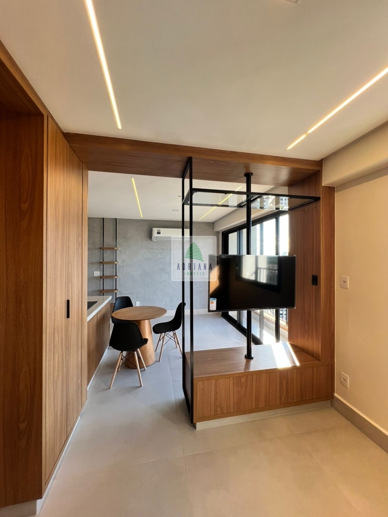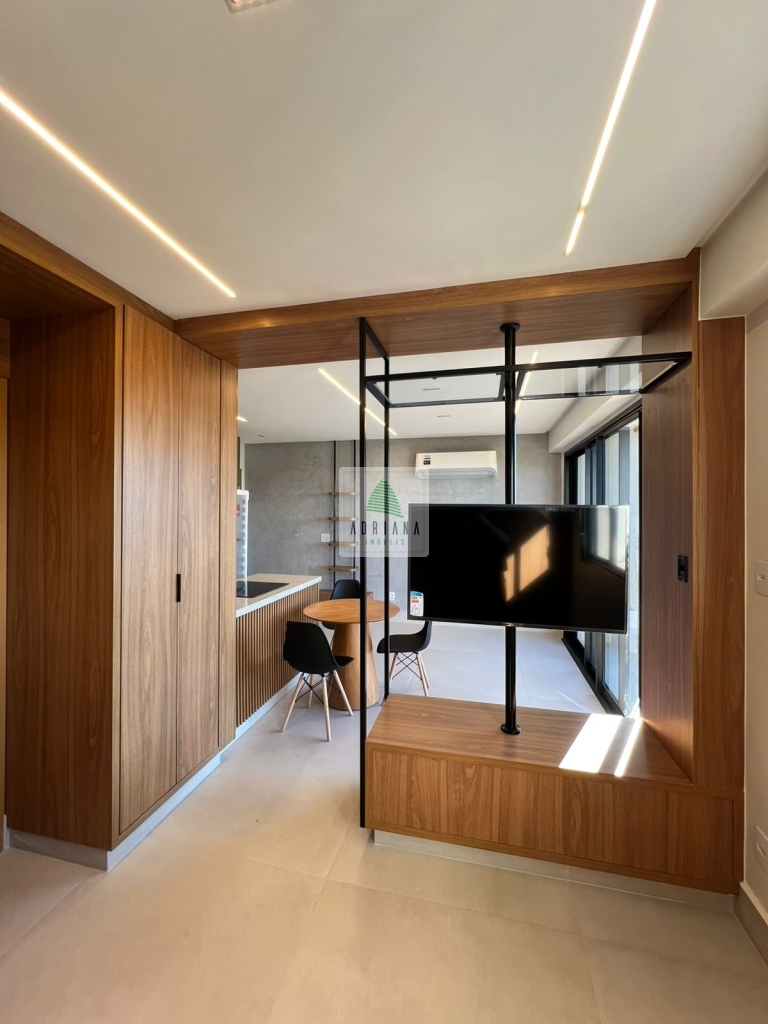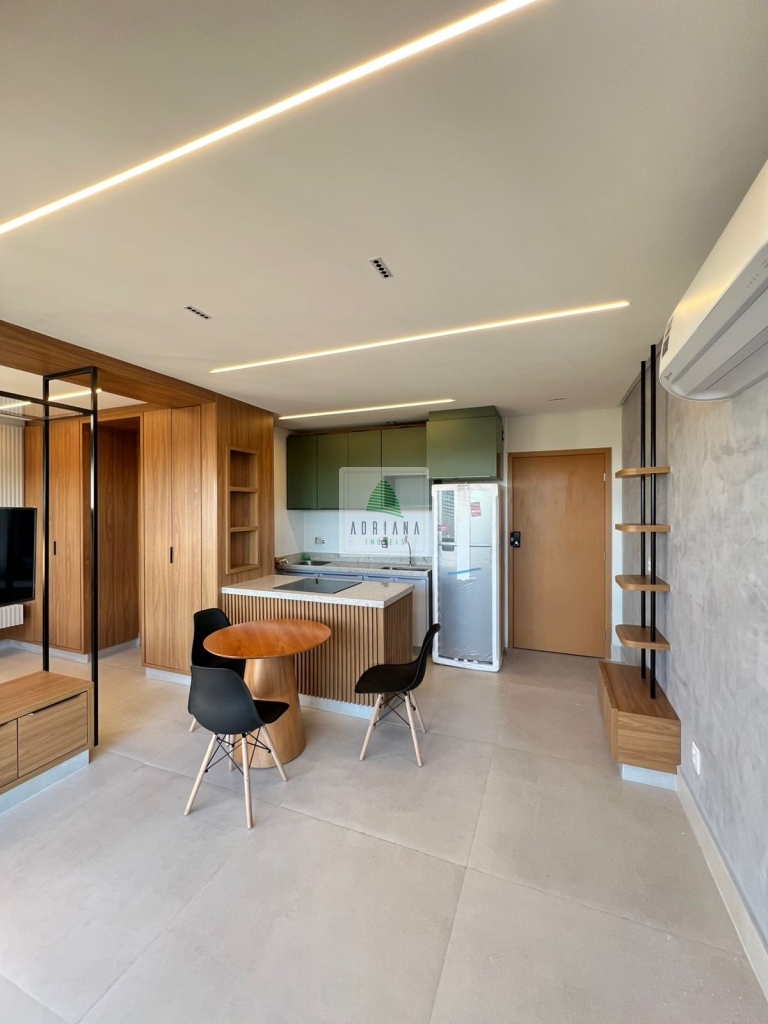 estudo exclusivo , montado com tudo que há de melhor , decoração e planejados , incomparáveis , cozinha montada com, bancada com fogão, indução, ar condicionado no quarto, 1 vaga de garagem coberta, OBS não será permitido : pets e fumantes.