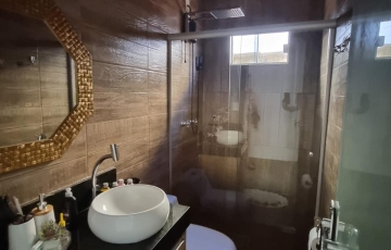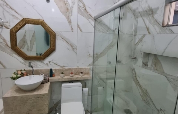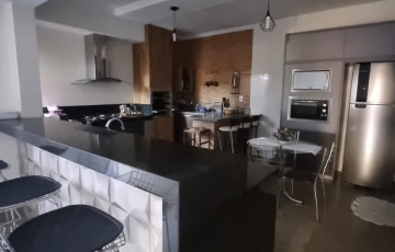 3 quartos , sendo 1 suíte, com closet, banheiro com banheiro com spa e box, banheiro social, com armários e box, sala de estar e jantar, cozinha com coifa m,, armários planejados , área de serviços, despensa, espaço gourmet cm churrasqueira e armários, área de serviços, 2 vagas de garagem , porcelanato 90x90, costureira para morar.