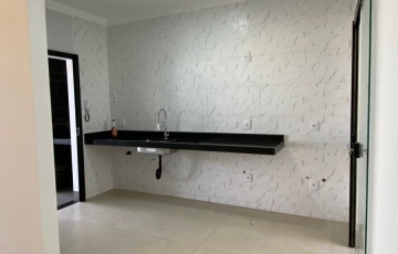 ✅ Cozinha com revestimentos retificados com pia e bancada no preto São Gabriel