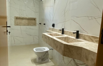 ✅ Bemheiro suíte com 2 pontos para chuveiros, pia escupida dupla no Bege Bahia;