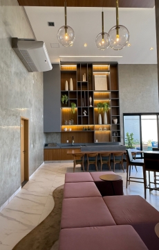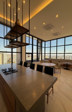 sala ampla integrando todo ambiente social do imóvel, sala, varanda, cozinha com ilha ao centro , trazendo, leveza, e interação ao ambiente, área de serviço com excelente resolução, lavanderia com espaço aberto , ventilação e claridade, 3 suítes plenas , área social como poucas vezes vista.