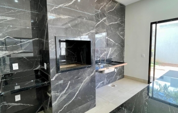 Churrasqueira a carvão e ilha em granito.