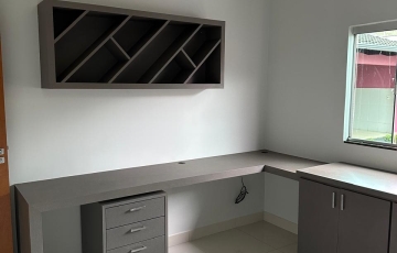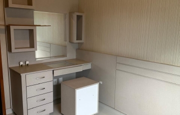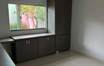 3 quartos, sendo 1 suíte. A suíte e um outro quarto com armários planejados