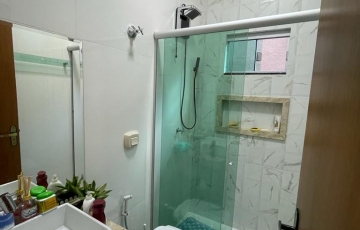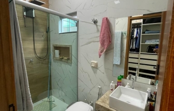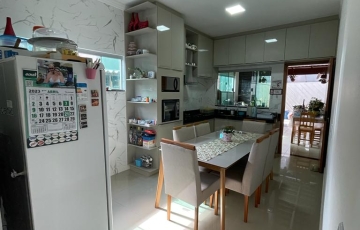 3 quartos sendo uma suíte e closet, banheiro da suíte, cabeceira de cama ,guarda roupa embutido, banheiro social, armários de embutir nos banheiros espelho 3D nos banheiros e lavabo guarda roupa de embutir nos quartos, banheiro social, sala grande com painel de televisão na sala , área gourmet, garagem pra 4 carros terreno de 300 mts e casa com 130 mts de área construída, 3 pergolados espaço pra colocar piscina ou outra coisa que tiver interesse armários na cozinha, armários na área de serviço .