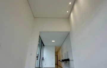 Sala e cozinha integradas com pé direito duplo