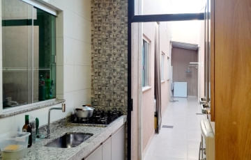 casa bem arejada, luz natural , 3 quartos sendo 1 suíte, sala em pé direito duplo , 2 cozinhas, área de serviços , garagem coberta para 1 , carro