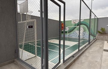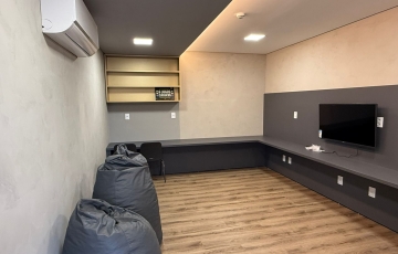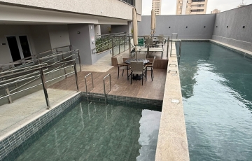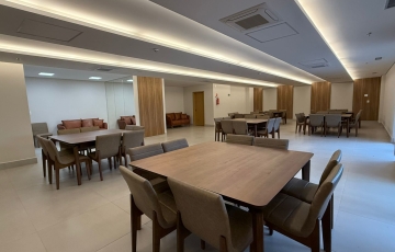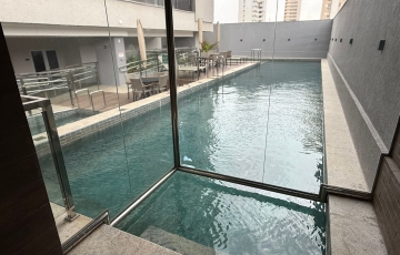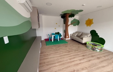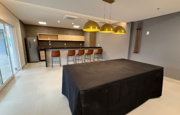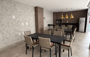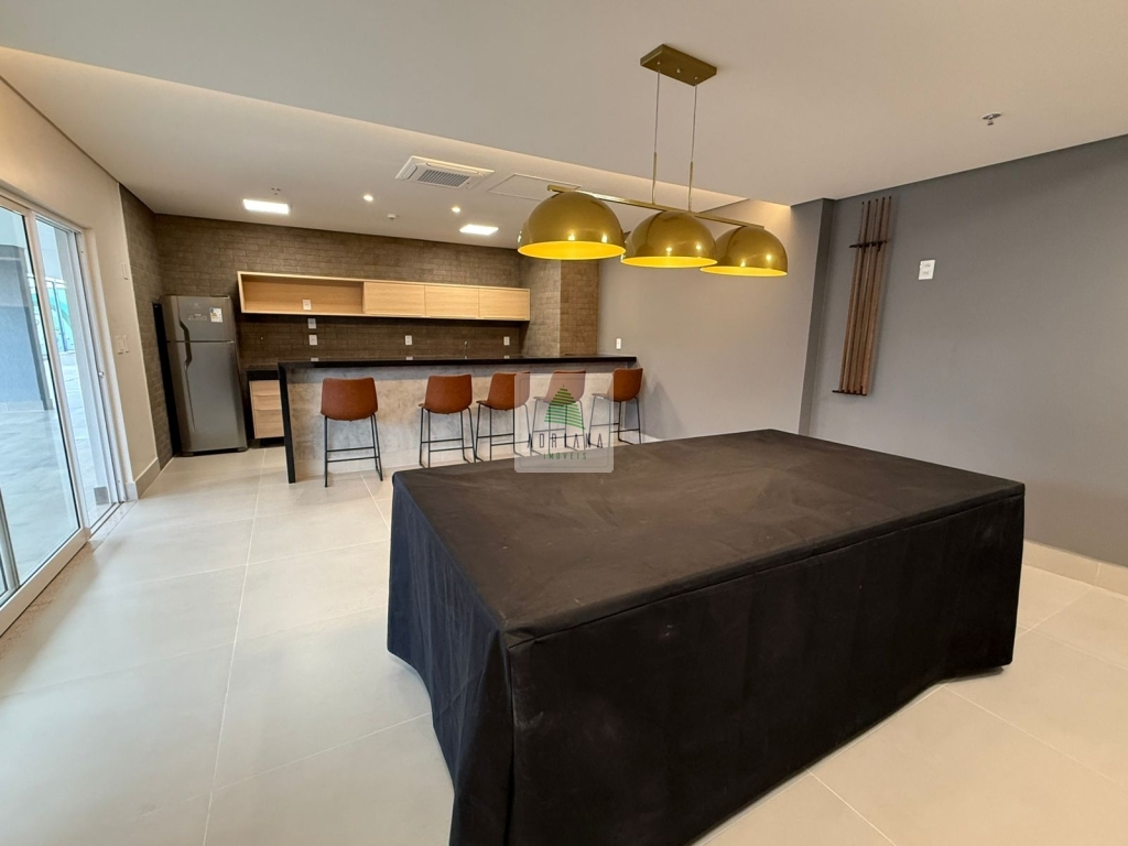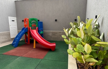 Área comum com piscina, área de churrasco, salão de festas, salão gourmet, brinquedoteca, quadra.