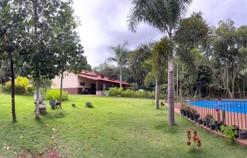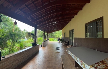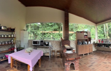 -Excelente casa sede com mais de 300m2 edificada em uma área exclusiva aos fundos com 6.000m2 projetados com deslumbrantes e verdes arbustos propícios para receber grandes variedades de pássaros livres a voar e a festejar sobre às frondosas árvores nativas da exuberante reserva legal em torno da sede.